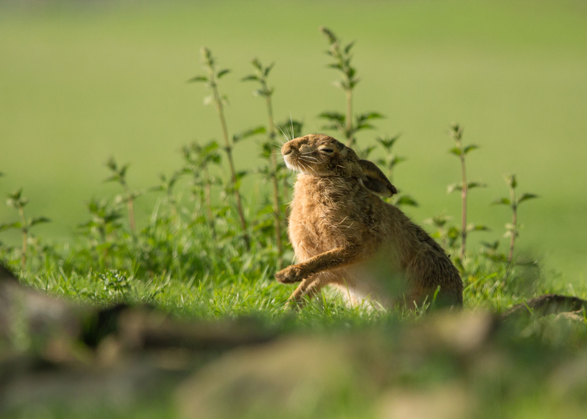 Brown hares are mainly nocturnal, and they forage at dawn and dusk.
